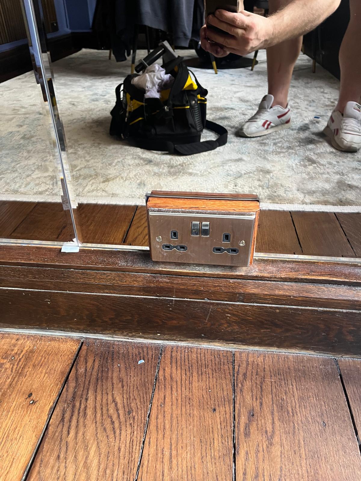 Showing our craftsmanship, precision cut mirror fitted neatly around floor socket